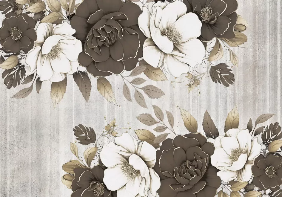 Fototapete: Grafiski Ziedi Neitrālos Toņos