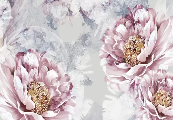 Fototapete: Lielas Peonijas Uz Akvareļa Fona